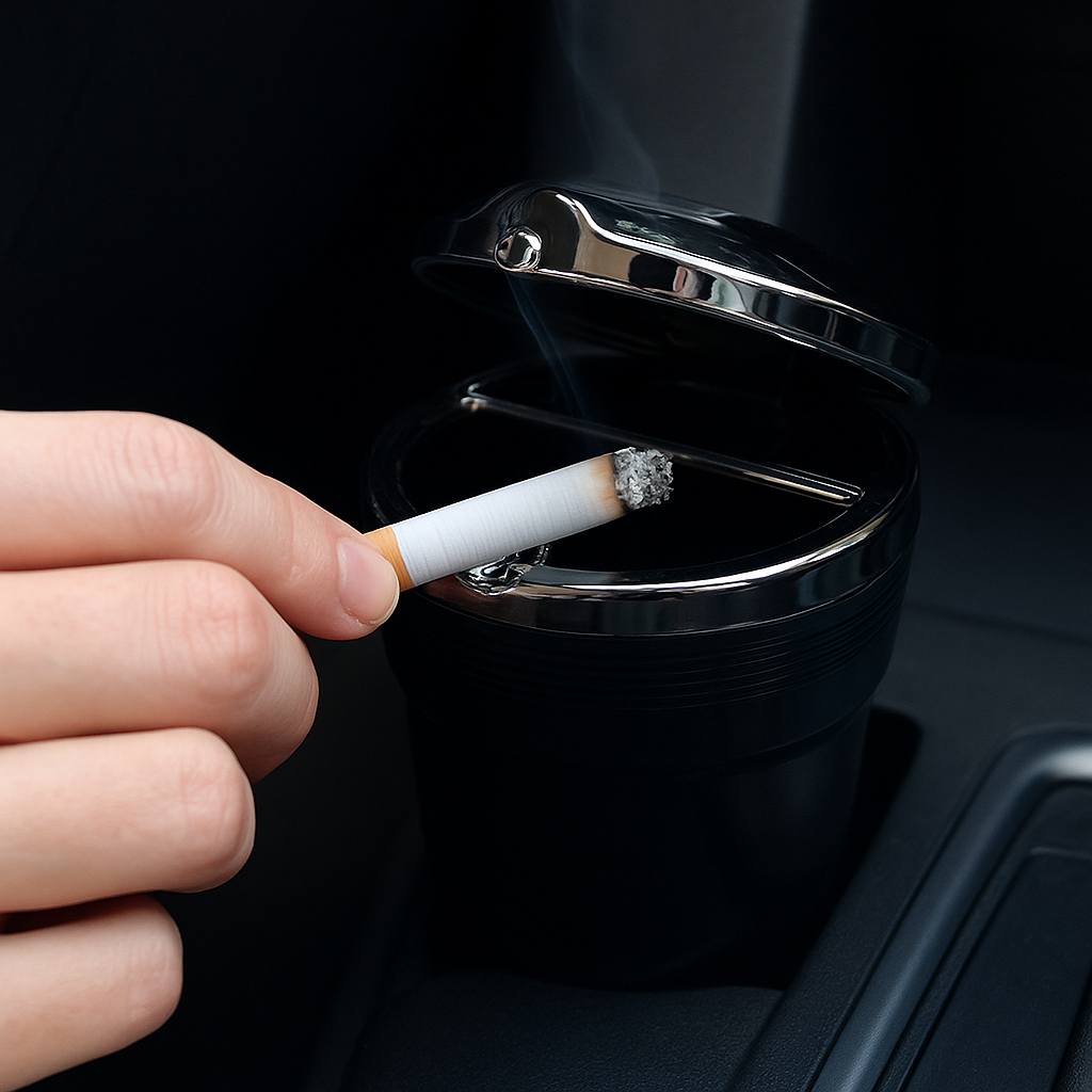 Zawsze upewnij się, że pokrywka jest szczelnie zamknięta po użyciu – to zapobiega wydostawaniu się dymu i chroni wnętrze samochodu.